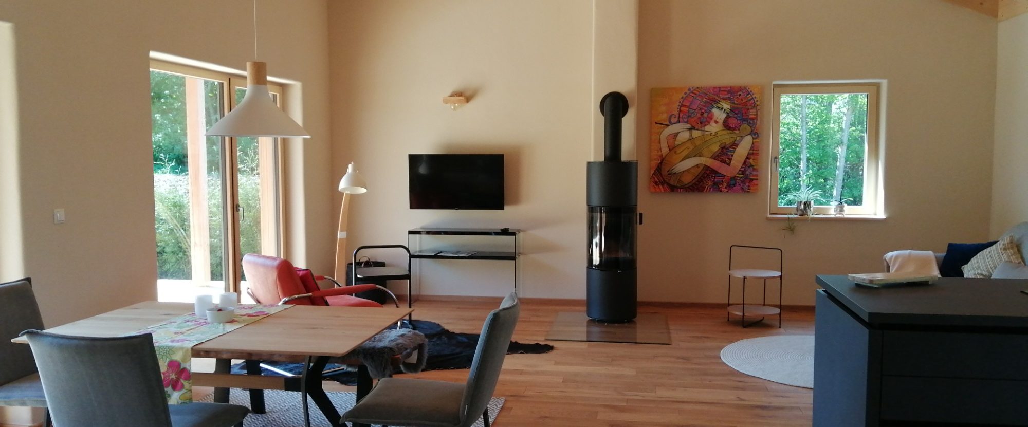 Der Holzofen im Wohnraum schafft an ruhigen Abenden eine gemütliche Atmosphäre.